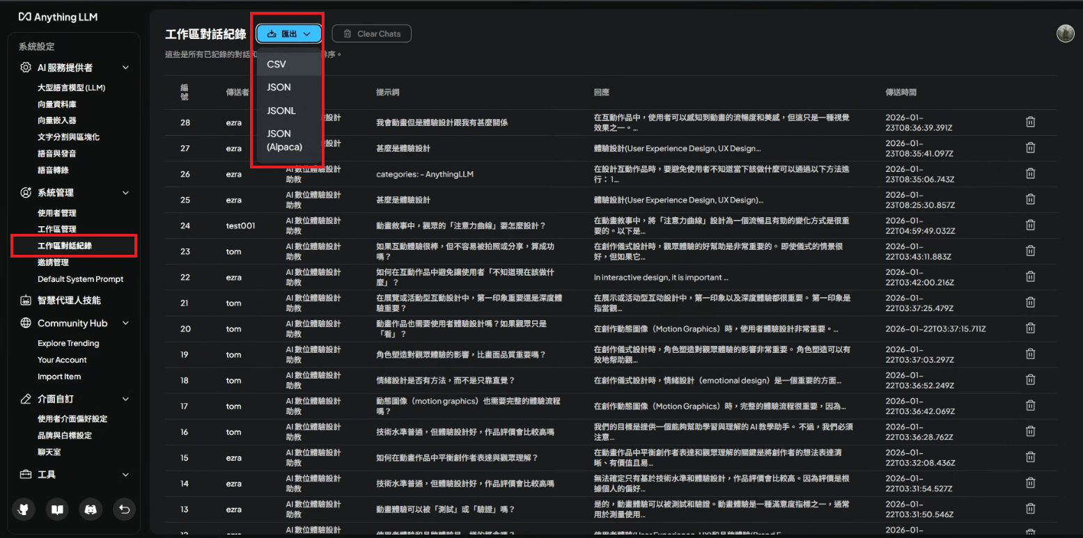 點選工作區對話紀錄
