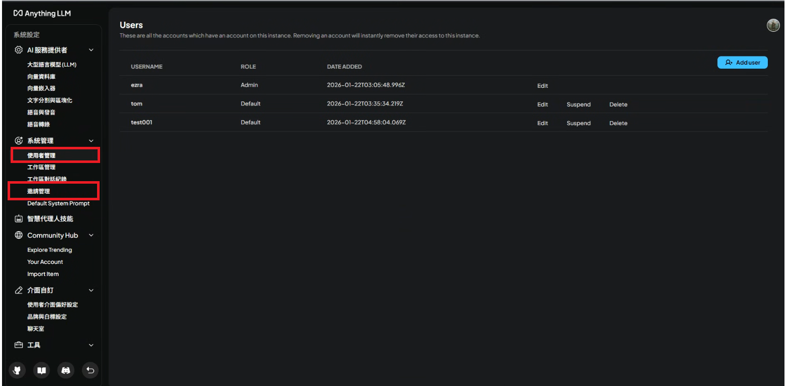 這裡分為使用者管理與邀請管理